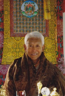Born in Lhasa in 1935, he was recognized at the age of 7 as a reincarnation of Sevan Repa, one of Milarepa’s closest disciples. He entered a monastery at 8, was ordained as a monk at 16, and became a Vice-Abbot at 24. Lama Kunga fled from Tibet in 1959, and in 1972, he founded Ewam Choden Tibetan Buddhist Center in the hills just north of Berkeley (there’s a permanent link to the website on this blog).