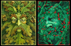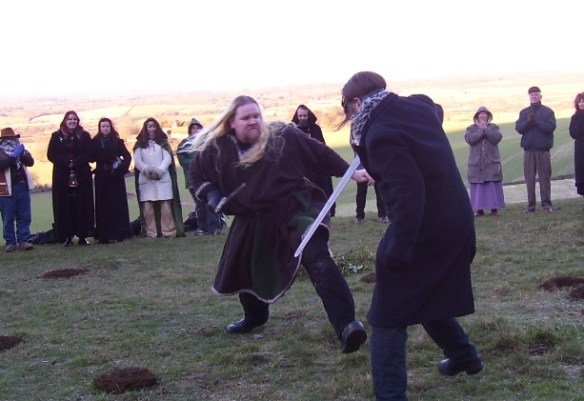 As predicted by Las Vegas odds-makers, the Oak King scored a narrow victory today over his twin brother, the Holly King. The Winter Queen is reportedly in mourning, though she is expected to emerge – as she has since time began – in her guise as the Spring Maiden, on or about February 2, (aka, Imbolc, Candlemas, St. Brighid’s Day) to take her place beside the new reigning monarch. At least that is the story the old Britons told to explain how the darkest day of the year hides the seed of summer, and why the Winter King is likely to win the scheduled rematch on June 21.