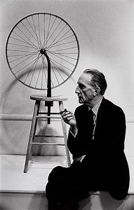 In 1913, Duchamp mounted a bicycle wheel upside down on a bench in his studio. This was the first of his “readymades,” a name he used for mass produced, rather than handcrafted goods. He never submitted this first piece to an show. “I enjoyed looking at it just as I enjoy looking at the flames dancing in a fireplace,” he said.