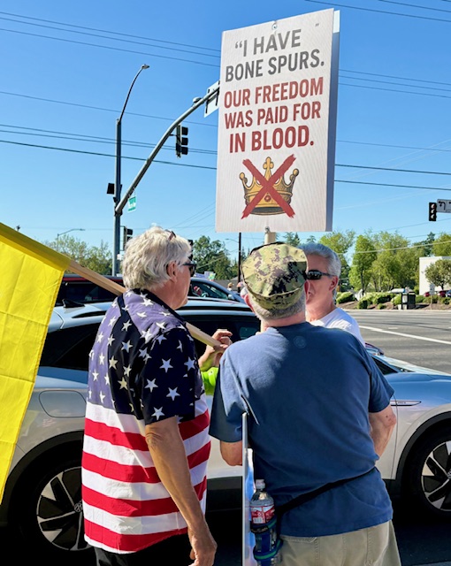 Not dead, just at a loss for words in the jumble of chaotic events in this alternate reality we stumbled into through trusting a criminal whose only talent is selling reality TV as reality. It was satisfying to get out this morning with Mary to a small (250-300 people) No Kings rally in Orangevale, CA.