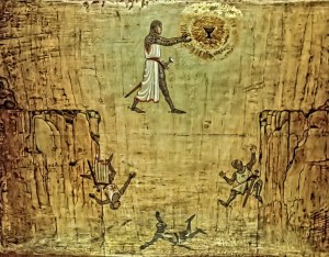 The next strata of myth emerged when humans settled into agricultural communities, beginning around 7500 B.C.. Villages grew into towns and then into cities and “it was precisely at this point of space and time, in the Near East, and specifically Sumer, c. 3500-3000 B.C., that the evidence first appears among the ruins…first, of a disciplined social order imposed from above by force, and next, of deliberate expeditions of military conquest against neighbors…campaigns of systematic conquest and subjugation.” The principle here, said Campbell, was “greed for more than one’s share.”